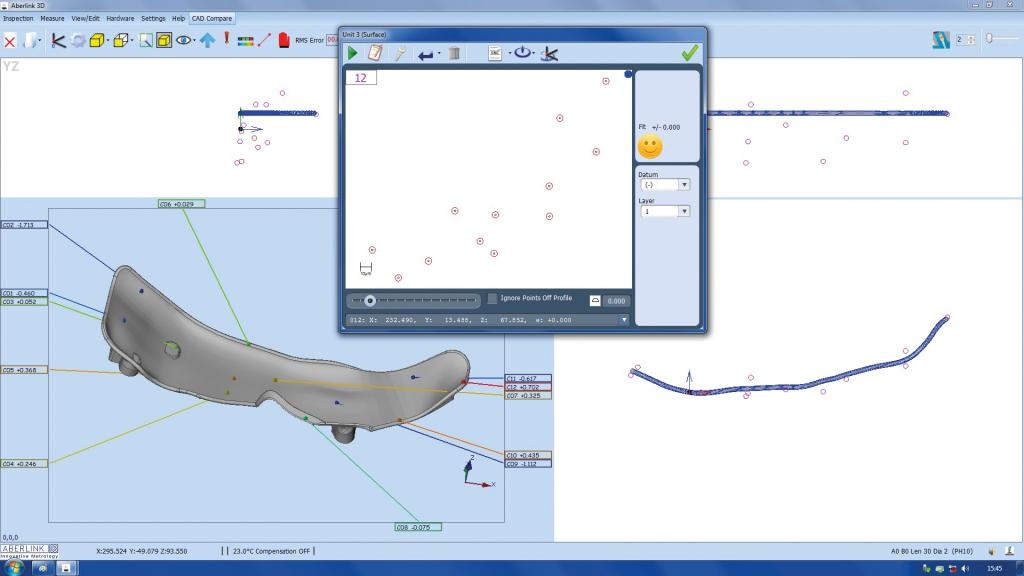 Supplementary tabulated reports show nominals as well as tolerance values with a ‘PASS’ or ‘FAIL’ SPC information can either be reported or exported to excel. Distribution and control charts are also produced.